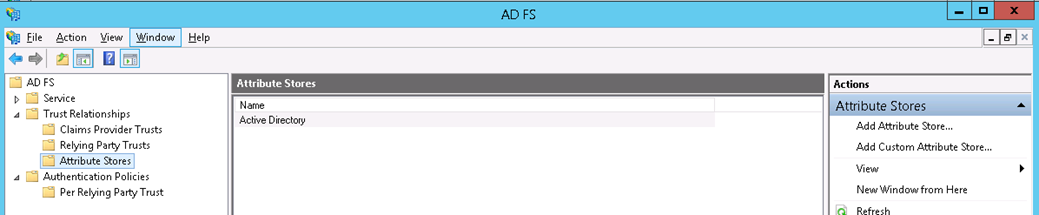 - Once launched, expand Trust Relationships and click on Attribute Stores and you should see “Active Directory†under the list.