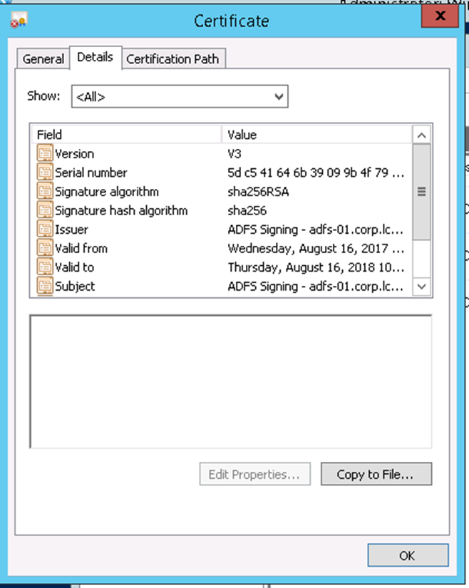 - Right click on the Token-Signing certificate and select View Certificate.