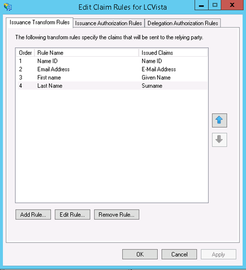 LCvista supports SSO using the SAML 2.0 standard. This document walks through a standard configuration in ADFS 3.0. These steps will be similar in ADFS 2.0 but screenshots may not match exactly.