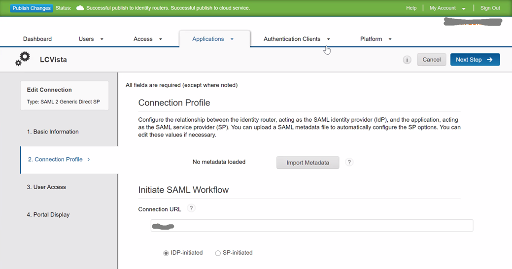 - Download the metadata.xml from the RSA application that was created and enter the following values into LCvista.