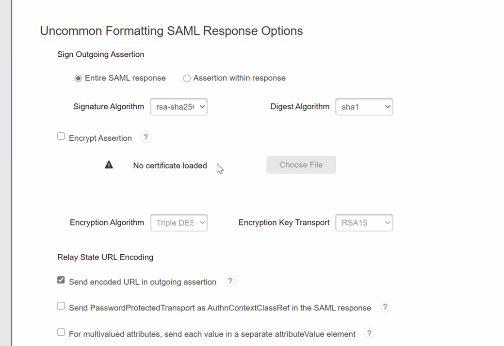 - URL: The Location property from the SingleSignOnService tag towards bottom of metadata.xml file.