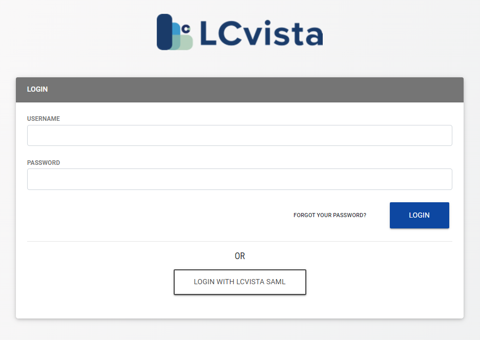 With SSO Enabled, LCvista also provides the option for username and password authentication. With this configuration option, a user will have the option to use their LCvista specific username and password credentials, or click on the Login with <company name> SAML button.