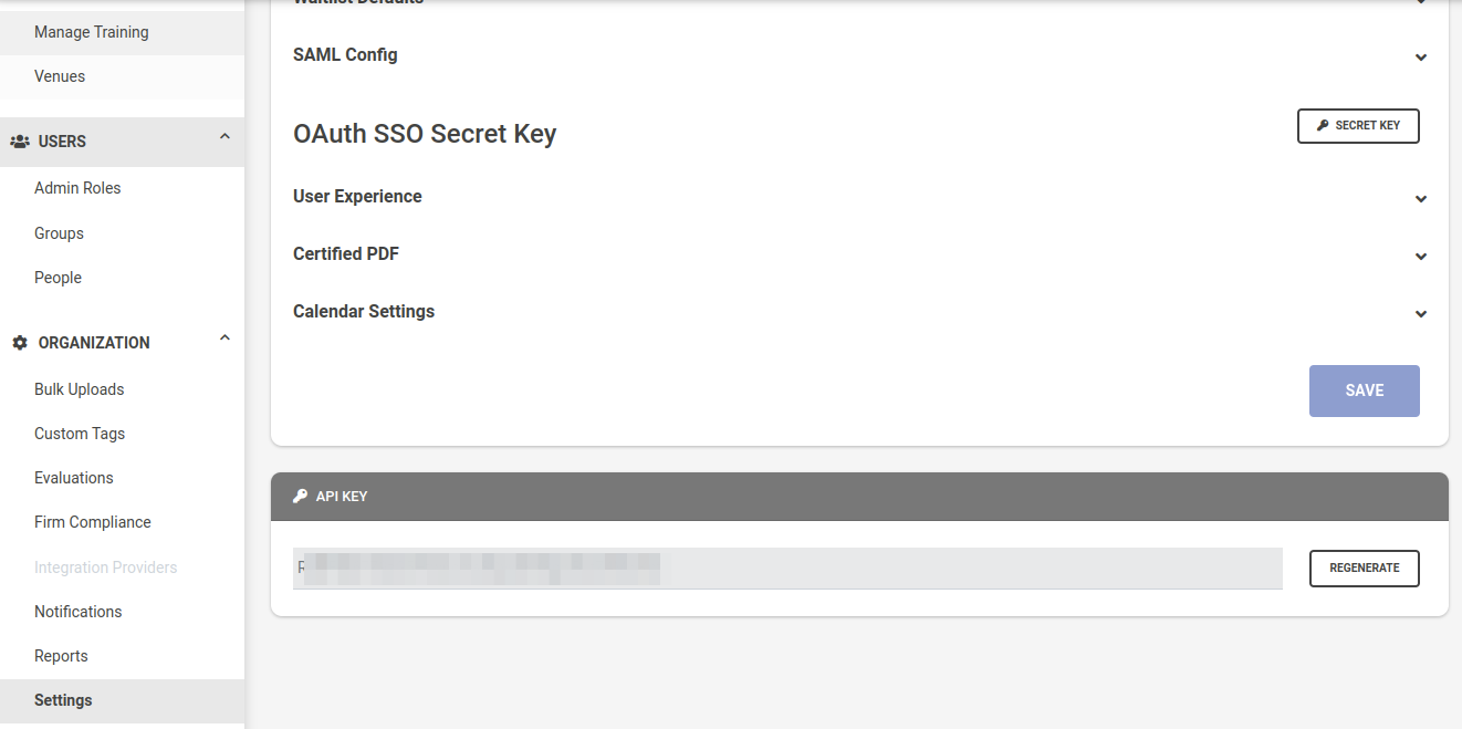 1. Generate or copy your LCvista API Key from the Organization > Settings menu.
