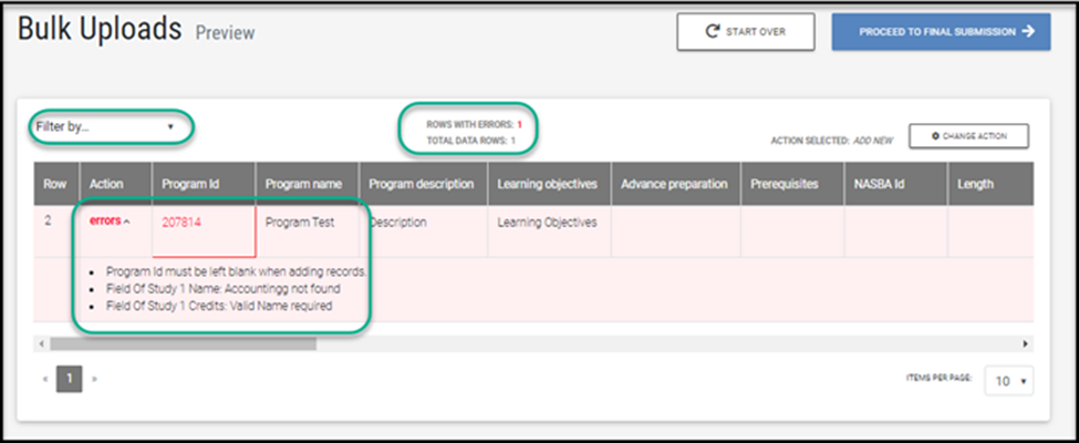 - Edit the cell(s) directly from the Bulk Uploads Preview page and proceed with Validate Changes.