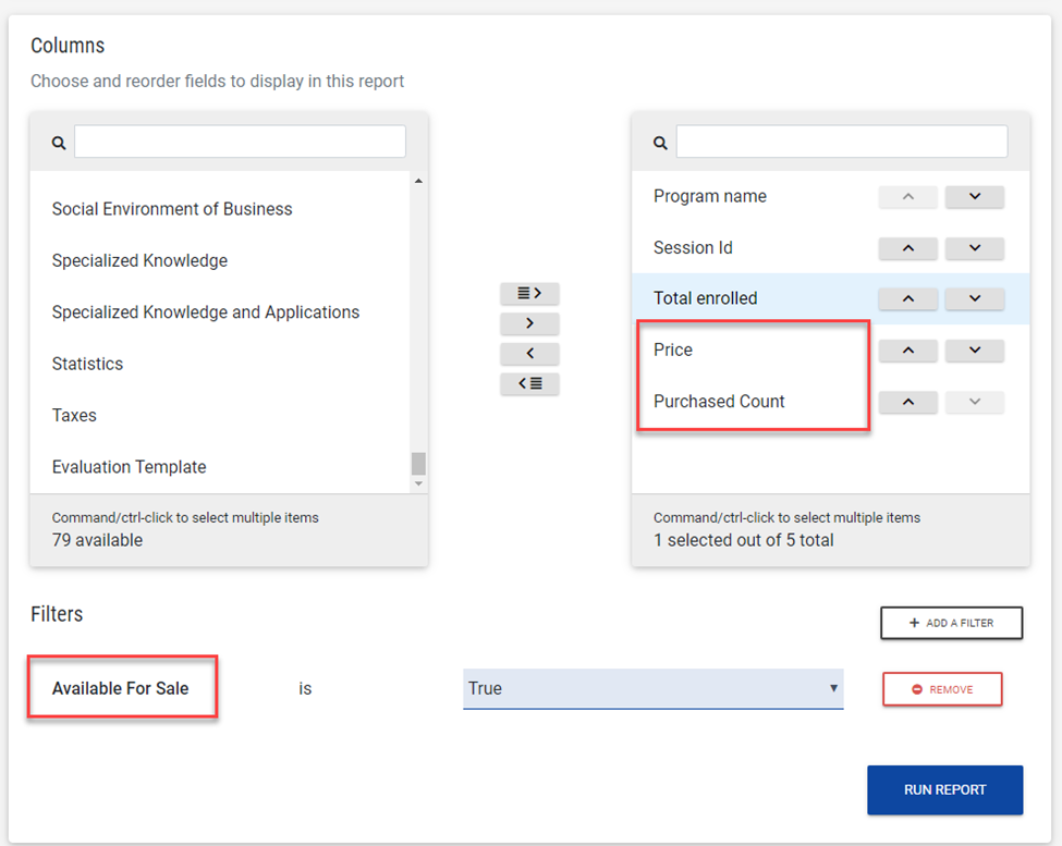 Manage Programs: Filter by Sessions Available for Sale