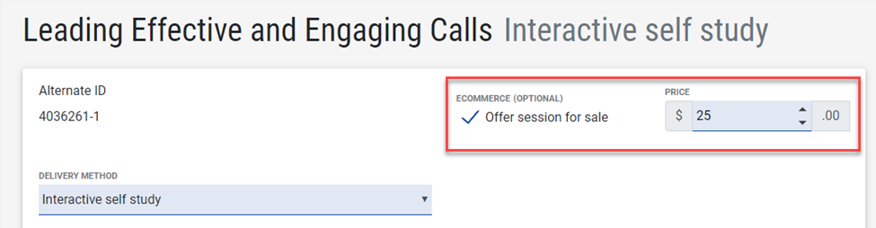 When creating a new session or editing an existing session, enable the option to “Offer session for sale” and enter a price.
