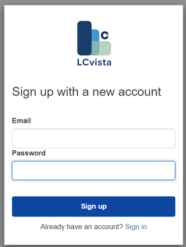 Next, they will be routed to the Sign up page and asked to enter an email and password.
