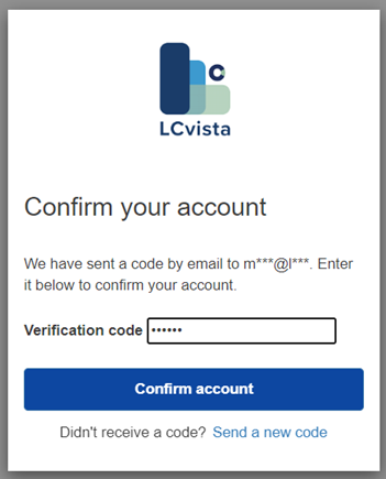 A notification will be sent to the email address added by the professional, containing a verification code to be entered in order to confirm the account. The email will be sent from no-reply@lcvista.com.