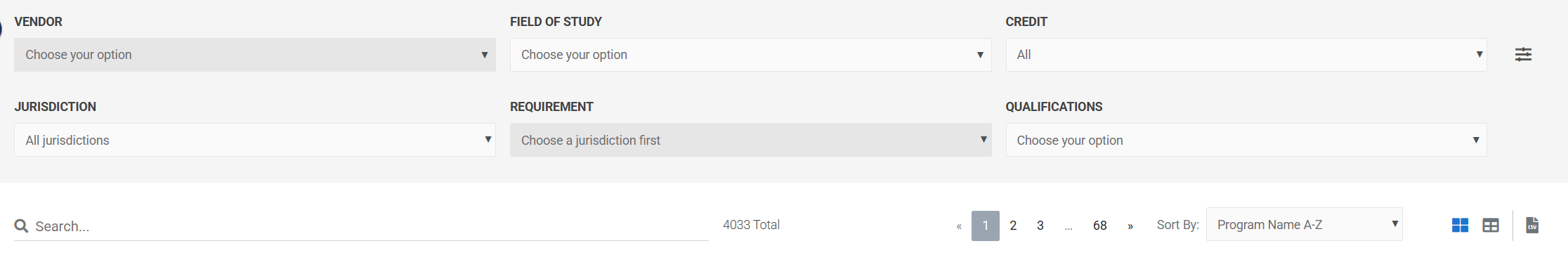 Use the search bar to find content by keyword, title, or provider. Then refine your results with the filters in the left panel: