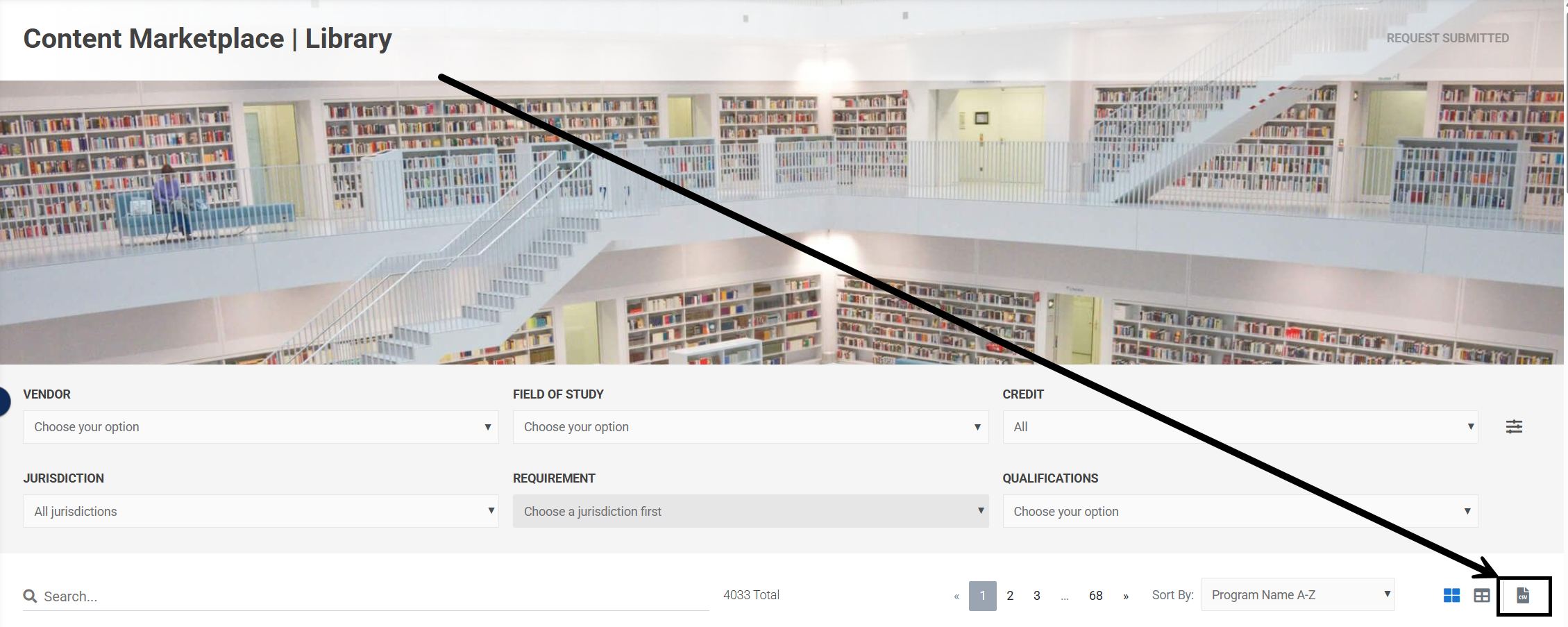 • Main Navigation: Select Content Marketplace from the left navigation bar.