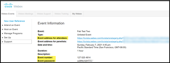 This information is accessible from the event form within Webex.