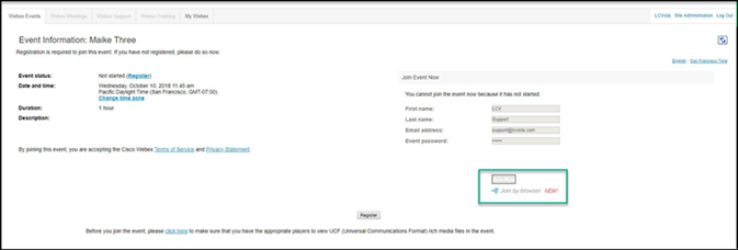 Tip! LCvista has two separate integrations with Webex, Webex Events and Webex SSO.