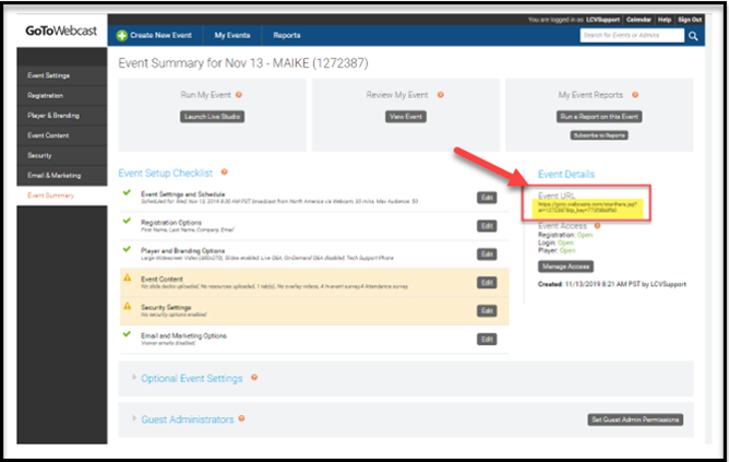 Please find a helpful screenshot here on where you can retrieve this Event URL from GoToWebcast: