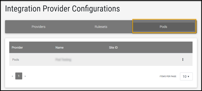 This link directs you to the Integration Provider Configurations page. with a third tab available for the Pods integration.