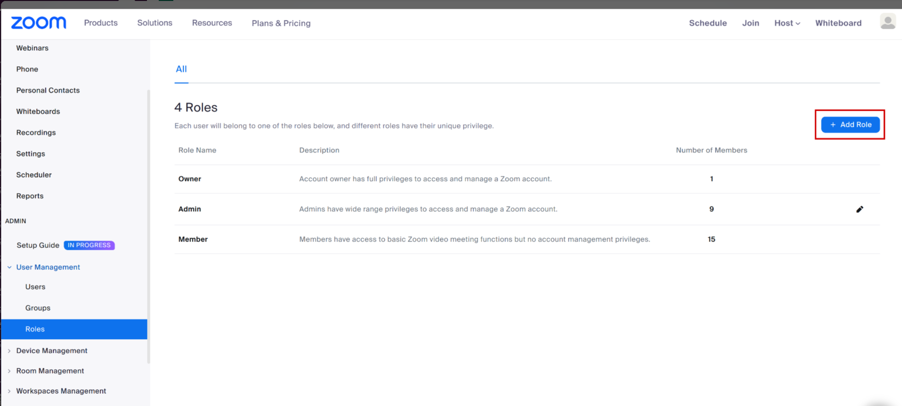 Step 1: From User Management, select Roles, and Add Role.