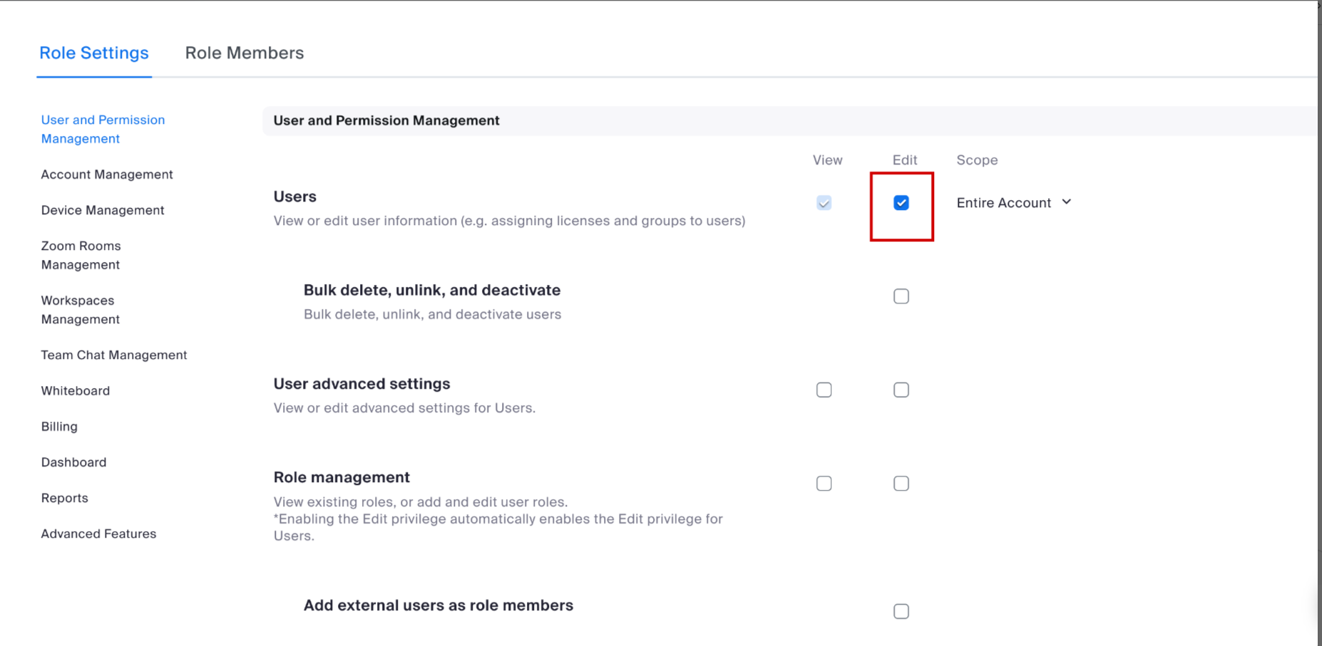 Step 3: From the Role Settings tab, select the following and Save Changes.