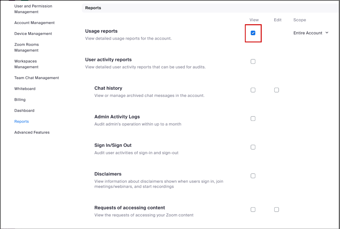 - View, Usage Reports