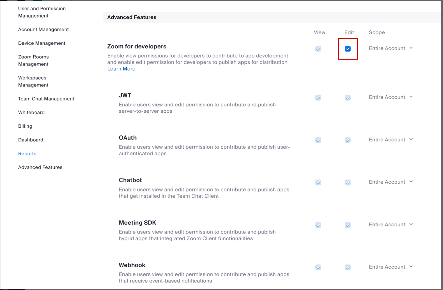 Edit, Zoom for Developers