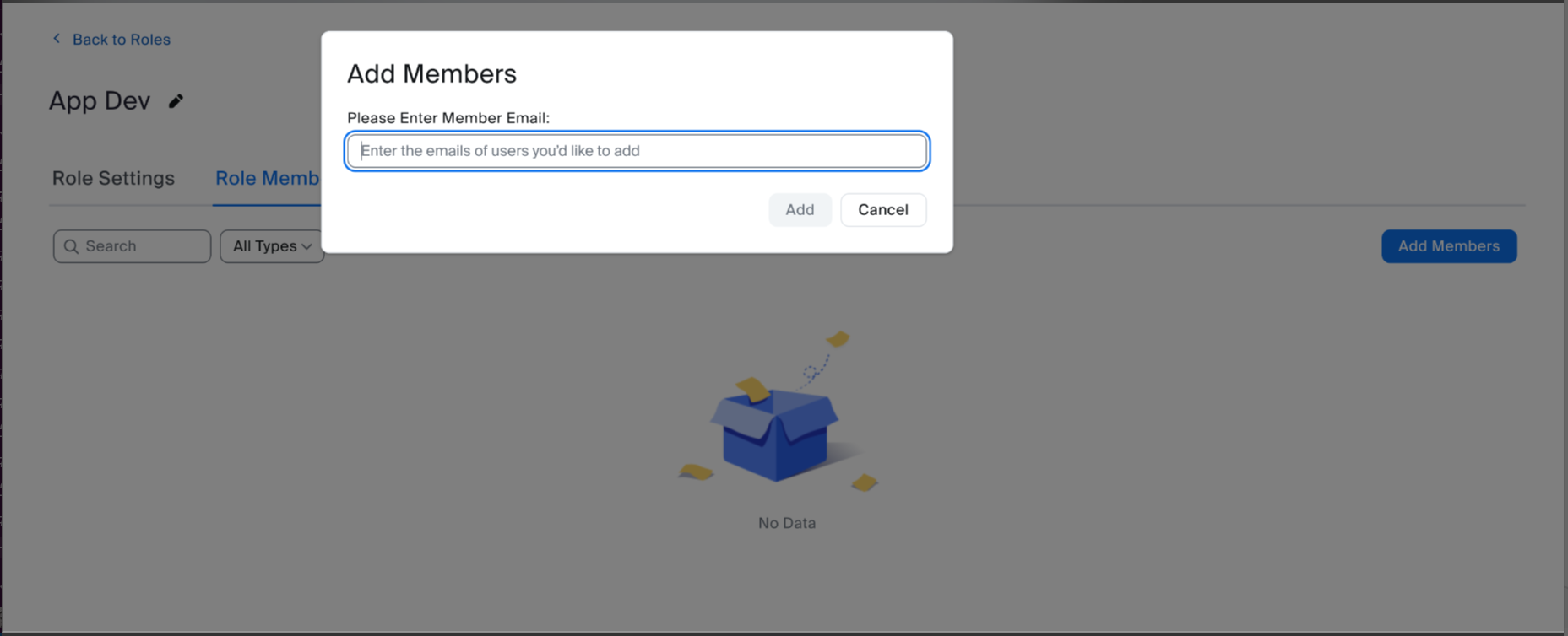 Step 5: Enter the appropriate member email address, and select Add.