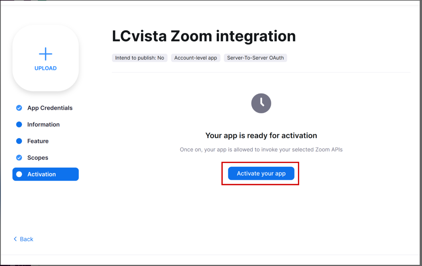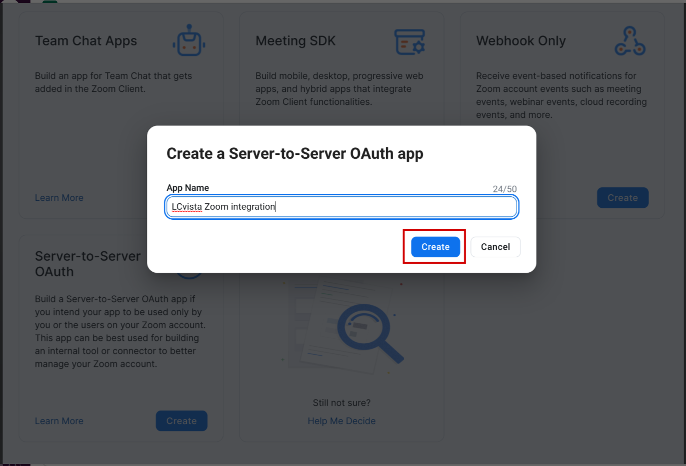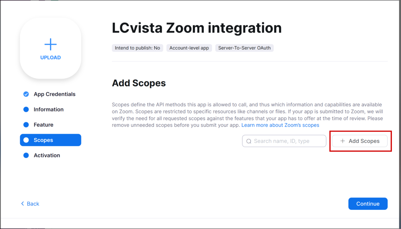 Before entering your Provider Credentials into LCvista, take note of the items which will be requested by Zoom (Server-to-Server OAuth app) :