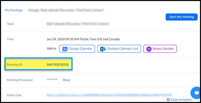 Please find a helpful screenshot on where you can retrieve this Meeting ID (Event ID) from Zoom: