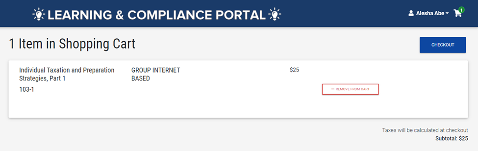- Select the Shopping Cart icon to view the session(s) that have been added to your cart.