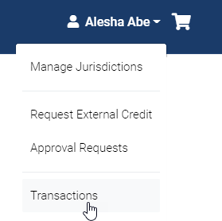 To review a history of sessions purchased, select Transactions from the drop-down next to your name in the upper-right hand corner of the screen.