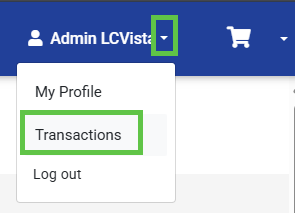 To review a history of sessions purchased, select Transactions from the drop-down next to your name in the upper-right-hand corner of the screen.