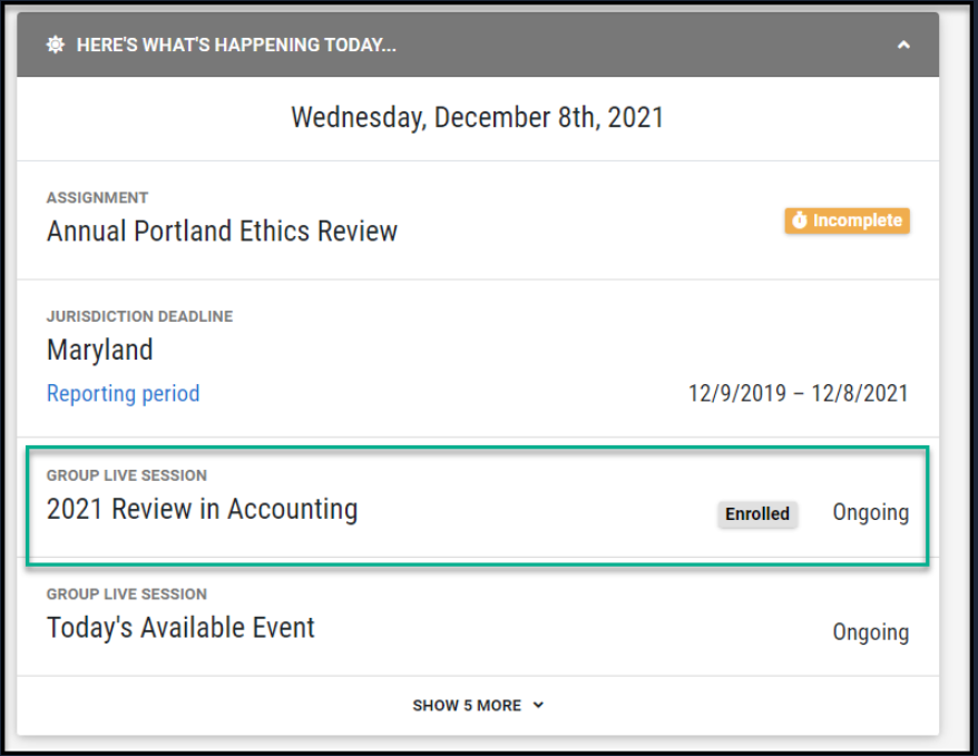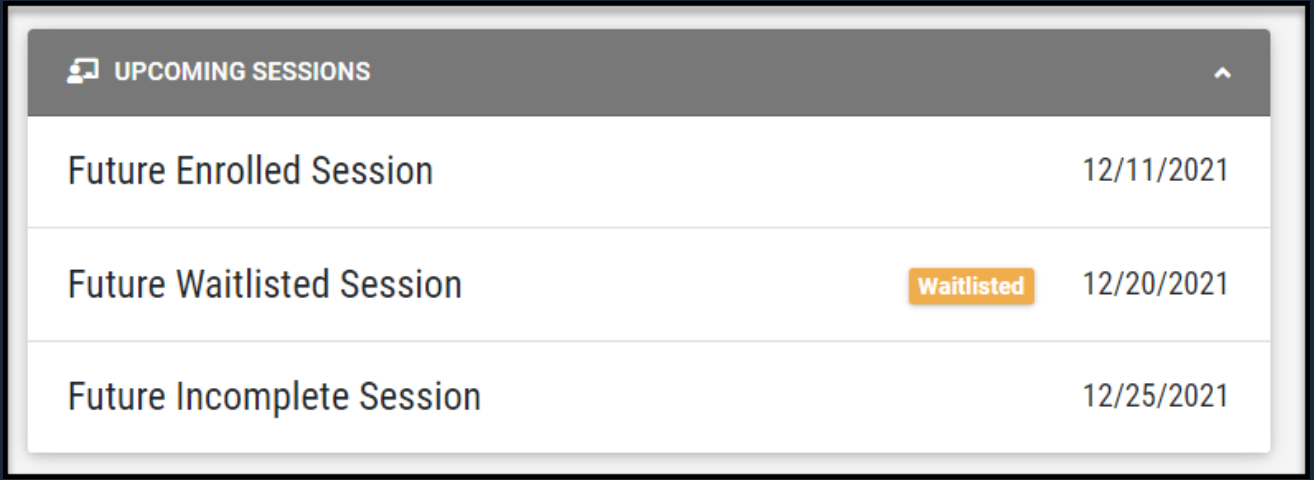 The intent of this widget is to highlight the sessions a user is enrolled in, which are taking place in the future.