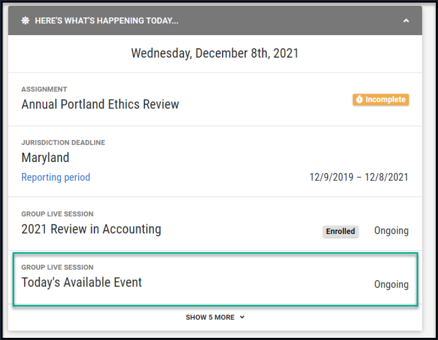 The intent of this widget is to highlight to the logged in professional: the event, due dates and deadlines taking place today.