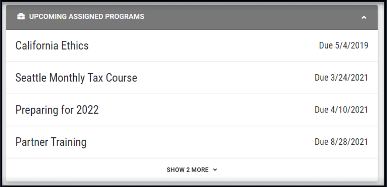 The purpose of this widget is to highlight the programs which have been assigned to a user.