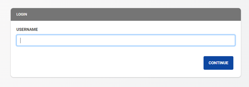 As a existing user, the first time you attempt to login to your account you will be met with the following login screen. Enter your username, and select Continue.
