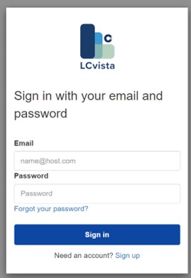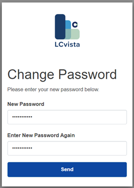 Upon entering a verified username on this site, you will be asked to complete the following workflow. Upon selecting SEND PASSWORD a temporary password will be sent to the email address associated to your account from address no-reply@lcvista.com.