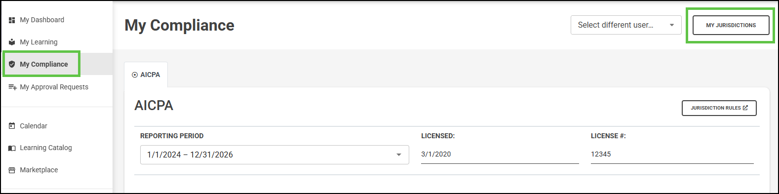 To manage all accessible jurisdictions, first select My Jurisdictions from within the My Compliance menu