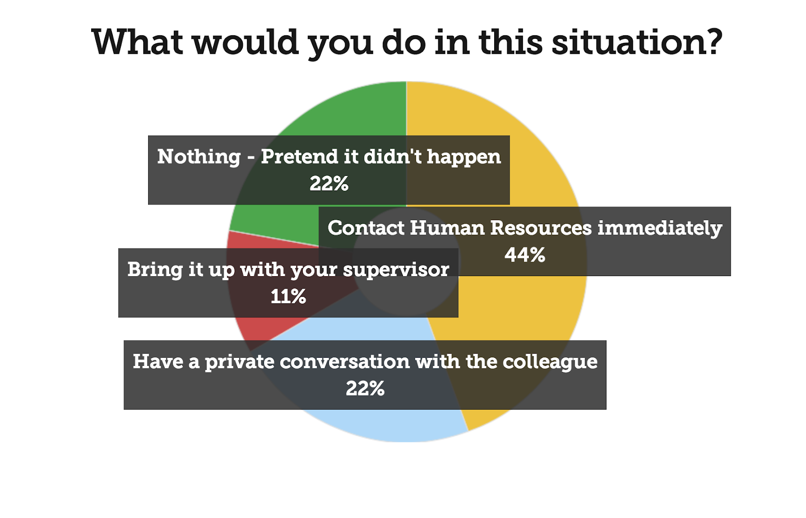 But when it comes to presenting these results, via Presentation Mode, longer response choices do not play well with the screen, particularly with our Pie Chart display mode.
