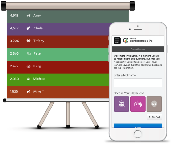 Note: Don’t see an option to unlock “Trivia Battle”? Contact support@conferences.io.
