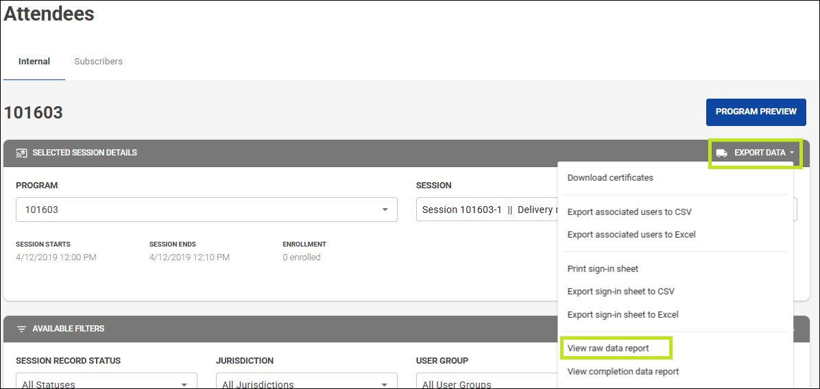 The Raw Data Report will include all attendees from the session.