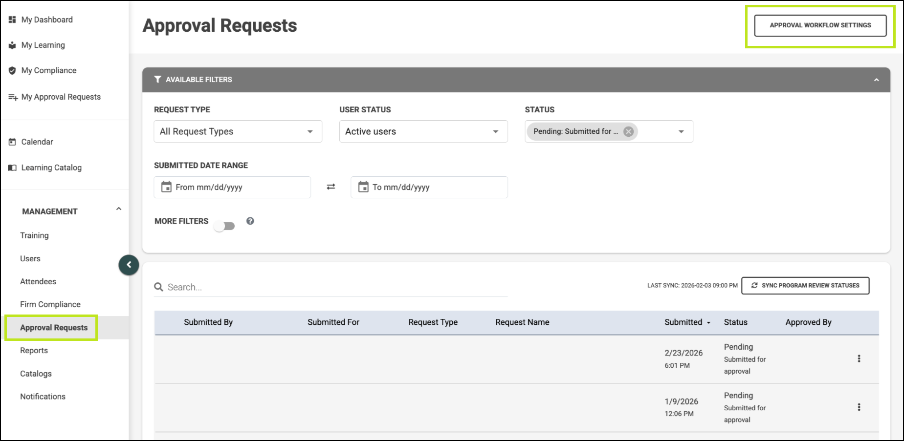 Approval Workflow SettingsApproval Requests page