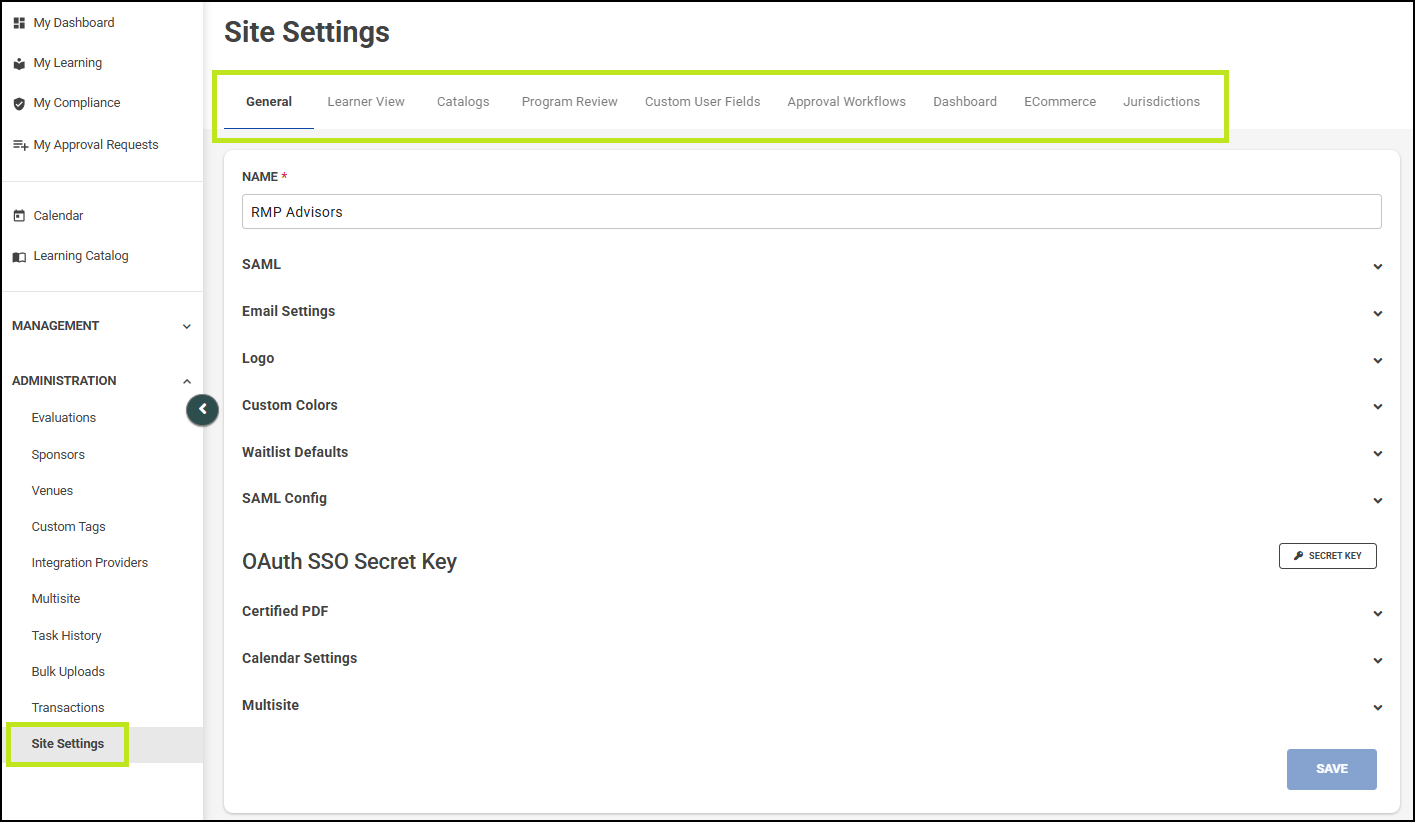 • Site Settings
