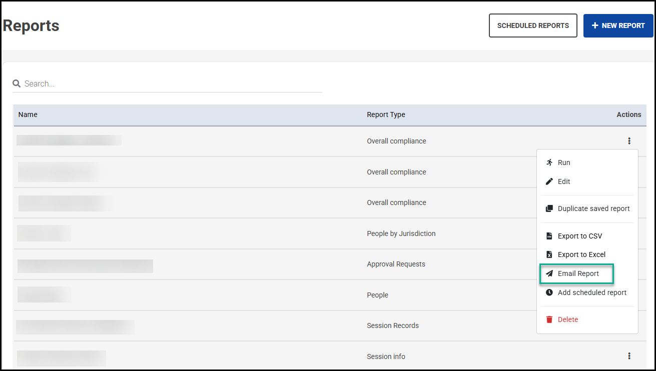 Email a report from any area where you can access your existing saved reports: