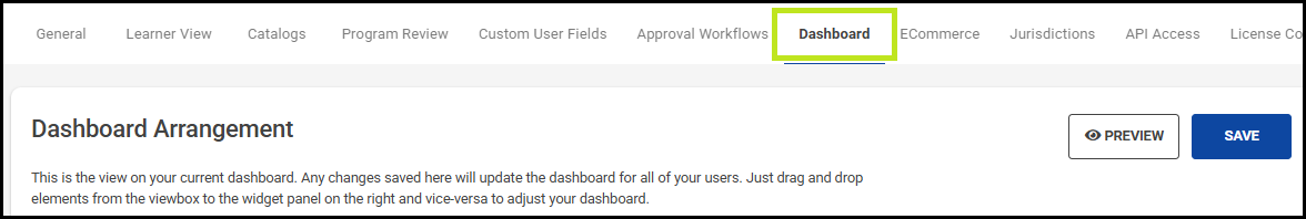 Preview will navigate you to a new tab displaying your most recent modifications to your Dashboard. Help text is included on this Preview to remind you of the individual currently reviewing the Dashboard modifications.