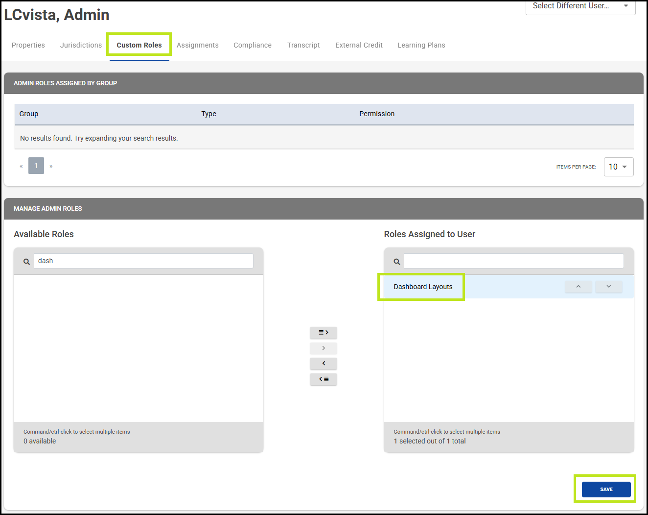The Save button will become active as soon as any update has been made to the Dashboard layout. Any modifications to this layout must be saved before navigating away from this page.