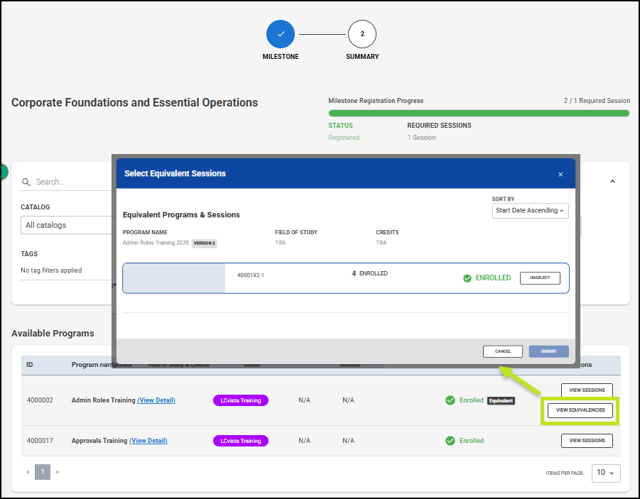 Versioning builds on equivalencies by automatically enabling an equivalency relationship between the original program and its new version, where the above equivalency settings are dictated by the user impact designation you choose.