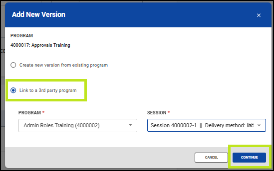 Note: In rare cases, you may need to link an existing program as a new version of another. We offer the option to “Link to a 3rd party program” for this.
